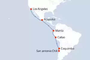 Itinéraire : Los Angeles, Acapulco, Manta, Callao, Coquimbo, San antonio Chili