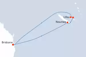 Itinéraire : Brisbane, Port Vila, Ile Mysterieuse, Noumea, Brisbane