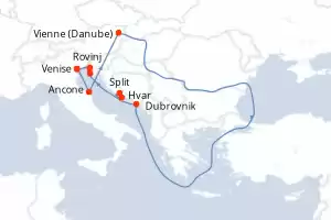 Itinéraire : Venise, Ancone, Vienne, Dubrovnik, Split, Hvar, Rovinj, Piran, Venise