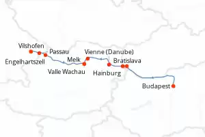 Itinéraire : Budapest, Bratislava, Hainburg, Vienne, Valle Wachau, Melk, Engelhartszell, Passau, Vilshofen