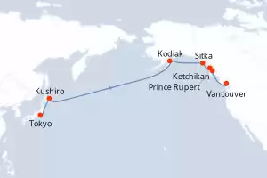 Itinéraire : Tokyo, Kushiro, Kodiak, Sitka, Ketchikan, Prince Rupert, Vancouver