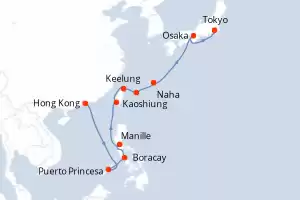 Itinéraire : Hong Kong, Puerto Princesa, Boracay, Manille, Kaoshiung, Keelung, Ishigaki, Naha, Osaka, Tokyo