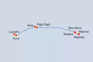 Itinéraire : Papeete, Moorea, Raiatea, Bora Bora, Pago Pago, Apia, Suva, Lautoka
