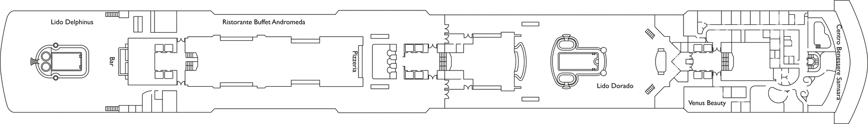 Pour profiter pleinement du beau temps au large des côtes sud-américaines, du soleil caribéen ou méditerranéen, Le navire dispose de deux piscines sur son pont extérieur. L'une d'entre elles est agencée à l'arrière du pont et bénéficie ainsi d’une belle vue sur la mer. L'autre piscine est surmontée d'une verrière amovible autorisant ainsi les baignades par mauvais temps ou en soirée. Ces bassins sont tous les deux agencés au milieu d'un vaste espace meublé de chaises longues. Le navire possède également quatre bains à remous installés autour des piscines. Les passagers qui aspirent à plus de calme optent pour la piscine du Samsara Spa. Pour les jeunes passagers, Le navire offre un petit bassin.
