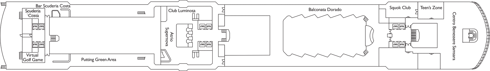 Une croisière Costa, c'est avant tout une croisière où les petits et grands trouvent leur bonheur. Un voyage à bord du bateau ne fait pas défaut. Le navire dispose en effet d'infrastructures variées pour occuper les jeunes passagers tout au long de la croisière. Les plus petits de 3 à 11 ans se retrouvent dans le cadre coloré du Squok Club. Dans cet espace exclusif, ils auront accès à une multitude de jeux ainsi qu'à un programme ludique et stimulant mis en place par des animateurs qualifiés. Pour que les plus grands profitent pleinement aussi de leur séjour à bord du bateau, le navire les attend au Teen's Zone avec entre autres de jeux de société et une grande télévision. Pour que les parents puissent passer une soirée en tête-à-tête durant la croisière, le navire propose le Group-Sitting. Ce service gratuit est dédié aux enfants de 3 à 11 ans et accessible de 23 h 30 à 1 h 30.