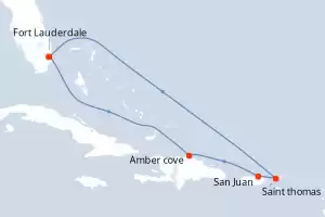Itinéraire : Fort Lauderdale, Amber cove, San Juan, Saint Martin (Antilles Néerlandaises), Saint thomas, Fort Lauderdale