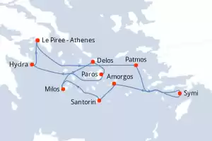 Itinéraire : Le Piree - Athenes, Patmos, Symi, Amorgos, Santorin, Milos, Delos, Paros, Hydra, Le Piree - Athenes
