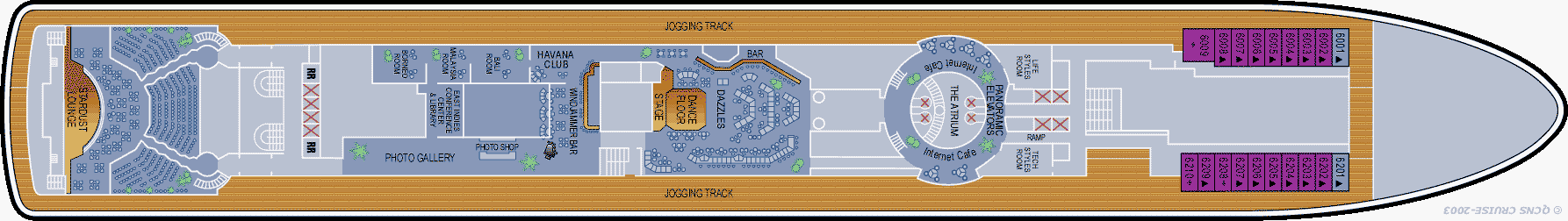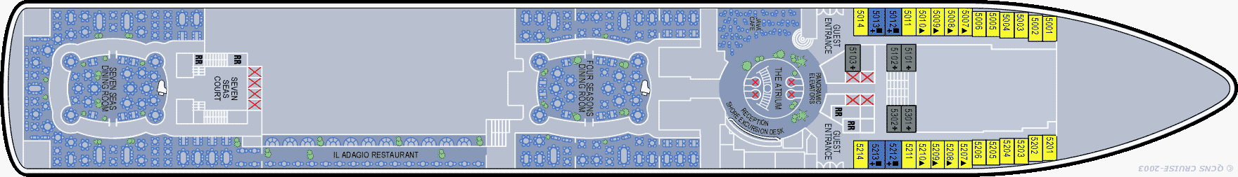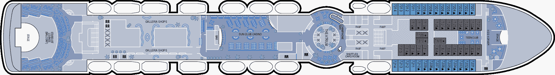 Si vous souhaitez vous faire plaisir ou gâter un proche, dirigez-vous vers le pont n°7 de ce bateau. La boutique Colombian Emeralds International se trouve ici. Ce magasin propose une sélection de montres de marque et de bijoux aux pierres précieuses à prix détaxés. La boutique Bijoux Terner se situe à proximité de cet établissement. Ses vitrines dévoilent des accessoires fantaisie et des bijoux issus des dernières tendances. La galerie marchande de ce navire est aussi située sur le pont n°7. Il s'agit de l'endroit idéal pour acheter des accessoires de mode, des habits avec le logo de la compagnie, des boissons alcoolisées et du tabac à prix détaxés. Le pont n°7 dispose également d'une galerie d'art où il est possible d'acheter des peintures réalisées par des artistes de renom.