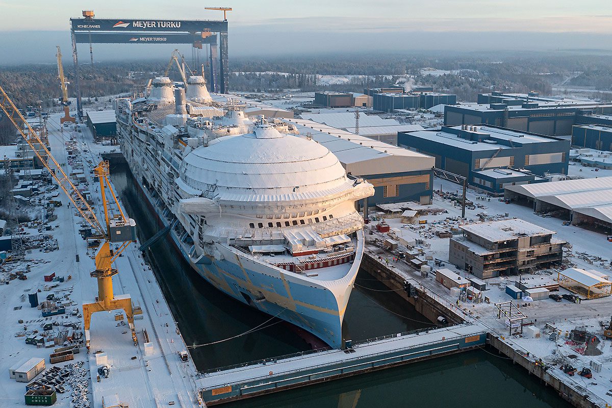 L’Icon of the Seas de la compagnie Royal Caribbean International a été mis à l’eau le 9 décembre au chantier naval finlandais de Meyer Turku. L’Icon of the Seas, qui détient actuellement le record du plus grand navire de croisière jamais construit, doit intégrer la flotte de Royal Caribbean à la fin de l’année 2023.