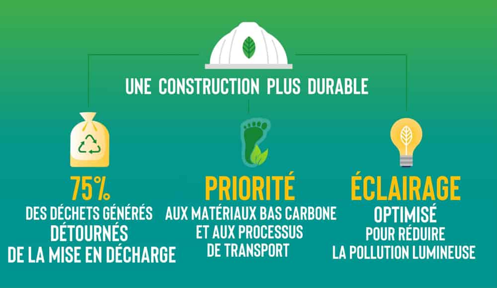 - La compagnie a favorisé l’utilisation de matériaux à faible empreinte carbone (production et transport).