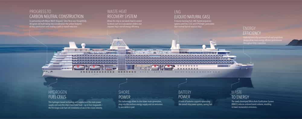 Ce vaisseau révolutionnaire sera livré à l’été 2023 par le chantier naval allemand Meyer Werft, spécialisé dans la conception de paquebots de luxe.