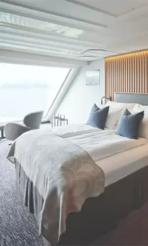 Les cabines et suites à bord d’Havila Voyages offrent un standard de confort hôtelier élevé. Chacune constitue un cocon au design nordique épuré, bien plus vaste que la moyenne habituelle sur cette ligne. De larges fenêtres (même dans certaines catégories standard) permettent de ne rien rater du spectacle naturel. Les suites, situées souvent à l'avant ou à l'arrière des navires, bénéficient de balcons privés spectaculaires et de services attentionnés (petit-déjeuner exclusif, embarquement prioritaire), garantissant une expérience hautement exclusive face aux éléments.