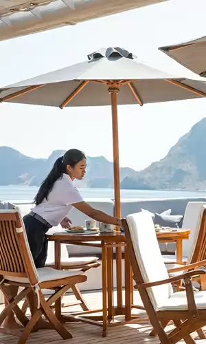 Le service à bord est d'une attention inégalée, anticipant les moindres désirs des hôtes. Des espaces de vie généreux, tels que des ponts d'observation en plein air, des salles de projection privées et des bibliothèques, contribuent à créer une ambiance de luxe décontracté, propice à l'échange et à la contemplation.