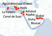 Quatar,Grèce,Malte,Italie,Jordanie,Oman,Emirats Arabes Unis,Israel,Egypte,Iles Grecques