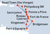 Martinique, Guadeloupe, Iles Vierges (Anglaises), St. Maarten, Dominica, Saint Kitts et Nevis, Antigua & Barbuda, Sainte Lucie, Barbades, Trinité et Tobago, Grenade, Saint Vincent et Grenadines