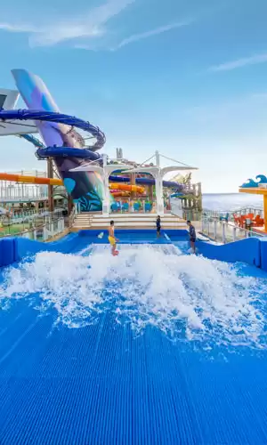 Royal Caribbean se présente comme le choix idéal pour les croisières familiales avec une gamme d'activités inégalée pour petits et grands. Les navires, parmi les plus vastes et impressionnants au monde, offrent une expérience époustouflante : des spectacles aquatiques à couper le souffle à l'AquaTheater, des comédies musicales dignes de Broadway, des toboggans parmi les plus vertigineux en mer comme l'Ultimate Abyss, des simulateurs de surf, des tyroliennes offrant des vues panoramiques exceptionnelles sans oublier les plus hauts murs d'escalade en mer.