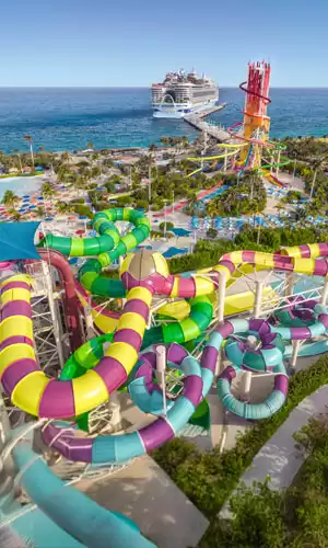 Les Bahamas sont célèbres pour leurs longues plages de sable fin et leurs eaux cristallines. De nombreuse croisières dans les Bahamas au départ du port de Miami font escale sur l'île privée de Royal Caribbean, Perfect Day at CocoCay. C'est une destination conçue pour plaire à tous, des familles aux couples en quête de tranquillité. Au programme : le Thrill Waterpark équipé du toboggan aquatique le plus haut d’Amérique du Nord, la possibilité de louer des cabanes privées, des expériences de snorkeling fascinantes, ainsi que la chance de survoler l'île en tyrolienne ou en montgolfière, offrant des vues panoramiques à couper le souffle.