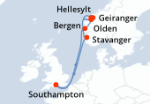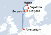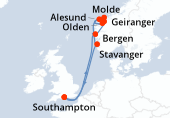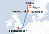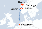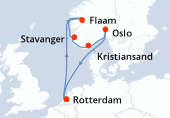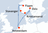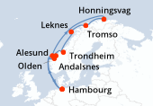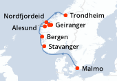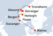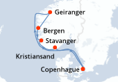 Itinéraire : Kiel, Copenhague, Hellesylt, Geiranger, Alesund, Flaam, Kiel