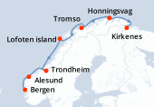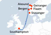 Itinéraire : Kiel, Copenhague, Hellesylt, Geiranger, Alesund, Flaam, Kiel