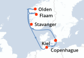 Itinéraire : Copenhague, Hellesylt, Geiranger, Bergen, Stavanger, Kiel, Copenhague