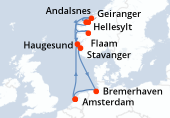Itinéraire : Kiel, Copenhague, Hellesylt, Geiranger, Alesund, Flaam, Kiel