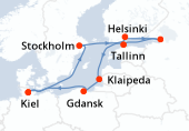 Itinéraire : Copenhague, Warnemunde, Gdynia, Klaipeda, Riga, Stockholm, Copenhague