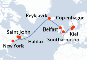 Itinéraire : Southampton, Zeebrugge, Rotterdam, Kristiansand, Oslo, Lysekil, Aarhus, Canal de Kiel, Copenhague