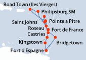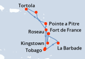 Martinique, Guadeloupe, Iles Vierges (Anglaises), St. Maarten, Dominica, Saint Kitts et Nevis, Antigua & Barbuda, Sainte Lucie, Barbades, Trinité et Tobago, Grenade, Saint Vincent et Grenadines