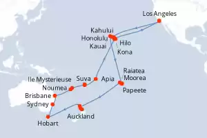 France, Kiribati, États-Unis Itinéraire: San Diego , Kauai , Honolulu , Honolulu , Kahului , Kona , Iles Fanning , Rangiroa , Huahine , Bora Bora , Raiatea , Papeete , Papeete , Bahia D opuncha , Fakarava , Nuku Hiva , San Diego Pension Complète MS Zaandam 36 jours Cabine standard San Diego 15/10/2026 dès 4329 € Cuisine Raffinée Expérience Premium Animations à bord exclusives Pension Complète Voir les offres