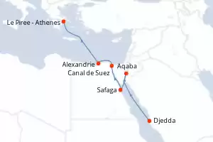 Grèce, Egypte, Jordanie, Arabie Saoudite Itinéraire: Djedda , Aqaba , Safaga , Canal de Suez , Alexandrie , Le Piree - Athenes Pension Complète Crystal Serenity 9 jours Cabine extérieure Djedda 09/05/2026 dès 4500 € Boissons incluses Pourboires inclus Service de majordome inclus Wifi standard illimité inclus Pension Complète Voir les offres