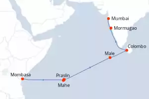 Seychelles, Kenya, Maldives, Inde, Sri Lanka Itinéraire: Mombasa , Mahe , Mahe , Praslin , La Digue , Male , Male , Colombo , Mormugao , Mumbai Pension Complète Crystal Symphony 14 jours Cabine extérieure Mombasa 05/01/2026 dès 5800 € Boissons incluses Pourboires inclus Service de majordome inclus Wifi standard illimité inclus Pension Complète Voir les offres
