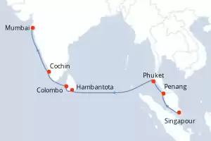Sri Lanka, Thaïlande, Malaisie, Singapour, Inde Itinéraire: Singapour , Penang , Phuket , Hambantota , Colombo , Cochin , Cochin , Mumbai , Mumbai Pension Complète Celebrity Millennium 13 jours Cabine standard Singapour 27/01/2026 dès 1866 € Croisières de Luxe -75% sur le 2nd passager Jusqu'à 450€ de remise Pension Complète Voir les offres