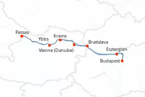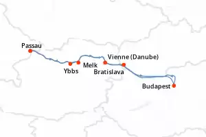 Allemagne,Autriche,France,Hongrie,Slovaquie Itinéraire: Passau , Ybbs , Vienne , Vienne , Budapest , Budapest , Bratislava , Melk , Passau Pension Complète MS BELVEDERE 8 jours Cabine standard Passau 30/03/2026 dès 924 € + dès 1220 € All inclusive disponible Pension Complète Autres départs : 23 mars 26 6-13 avr. 26 4-11 mai 26 Autres départs Voir les offres