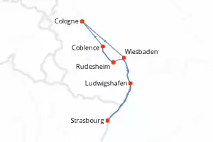Allemagne,France Itinéraire: Cologne , Wiesbaden , Ludwigshafen , Strasbourg , Rudesheim , Coblence , Cologne Pension Complète MS Rhein Symphonie 6 jours Cabine extérieure Cologne 06/10/2026 dès 719 € All inclusive disponible Pension Complète Autres départs : 27 sept. 26 15 oct. 26 Voir les offres