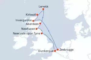Highlands écossais et îles du Nord Itinéraire: Dunkerque , Newcastle upon Tyne , Newhaven , Aberdeen , Lerwick , Kirkwall , Invergordon , Zeebrugge , Dunkerque Pension Complète Renaissance 11 jours Cabine standard Dunkerque 16/04/2026 dès 1169 € Croisière Francophone Longues escales Pension Complète Voir les offres