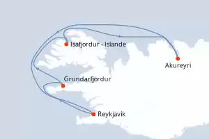 Mosaïque islandaise Itinéraire: Reykjavik , Iles Surtsey , Heimaey , Grundarfjordur , Ile de Grimsey , Akureyri , Isafjordhur , Reykjavik , Reykjavik Pension Complète Le Laperouse 8 jours Cabine balcon Reykjavik 27/07/2026 dès 6510 € + dès 6958 € Supplément single offert Excursion offerte Luxe Francophone Service Majordome inclus Boissons incluses Gastronomie Ducasse Conseil Pension Complète Autres départs : 3 aout 26 Voir les offres