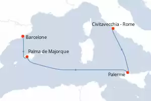 Itinéraire : Barcelone, Palma de Majorque, Palerme, Civitavecchia - Rome