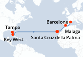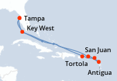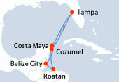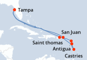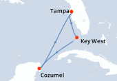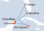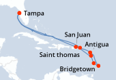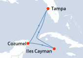 Situé sur les rives du fleuve d'Hillsborough, le centre-ville de Tampa profite de sa proximité avec le port. Lors d'une escale à Tampa, les croisiéristes peuvent explorer la ville en quelques heures. Non loin du terminal de croisière se trouve l'Aquarium de Floride et le Ybor City.