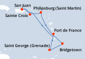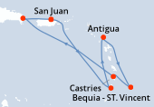 Autrefois le point de départ des expéditions espagnoles vers le Nouveau Monde, San Juan, la capitale de Porto Rico, est actuellement le port d'embarquement de nombreuses croisières dans les Caraïbes . La ville se trouve dans le nord de l'île sur une baie fermée par l'Isleta, une petite île abritant le Vieux San Juan, nommée Viejo San Juan. C'est ici que San Juan voit le jour en 1508 à l'initiative du premier gouverneur espagnol de l'île de Porto Rico, Juan Ponce de Leon. Bien que le temps a marqué certains bâtiments, le gouvernement a pris un soin particulier à restaurer les 400 bâtiments de style colonial que recense le Viejo San Juan, une action saluée et récompensée par l'UNESCO qui a gratifié ce noyau historique du titre de patrimoine mondial. De plus, à la sortie du port, situé dans le sud d'Isleta, les croisiéristes accèdent immédiatement aux ruelles pavées de cette zone pittoresque de la capitale portoricaine.